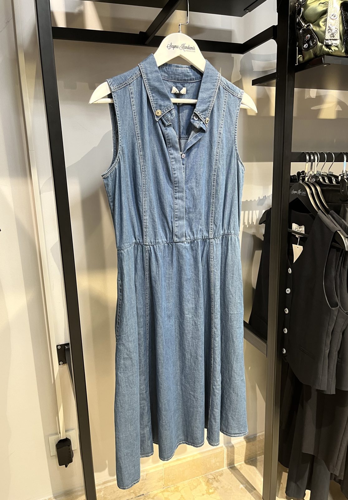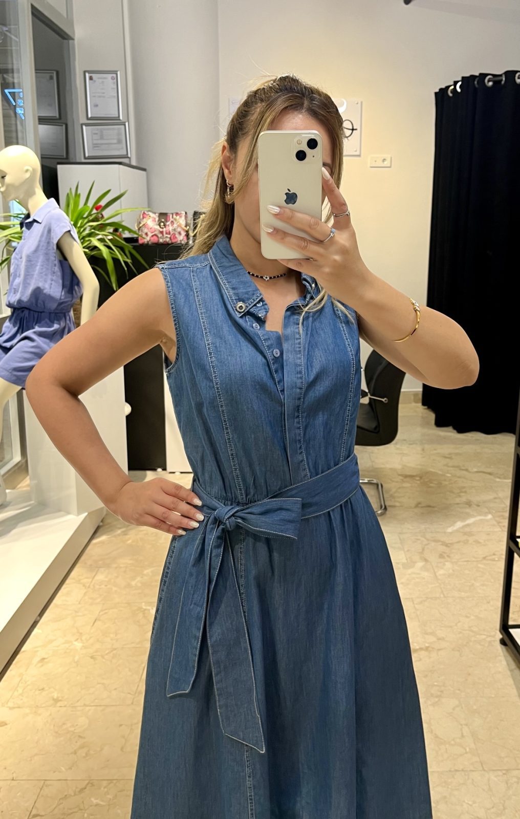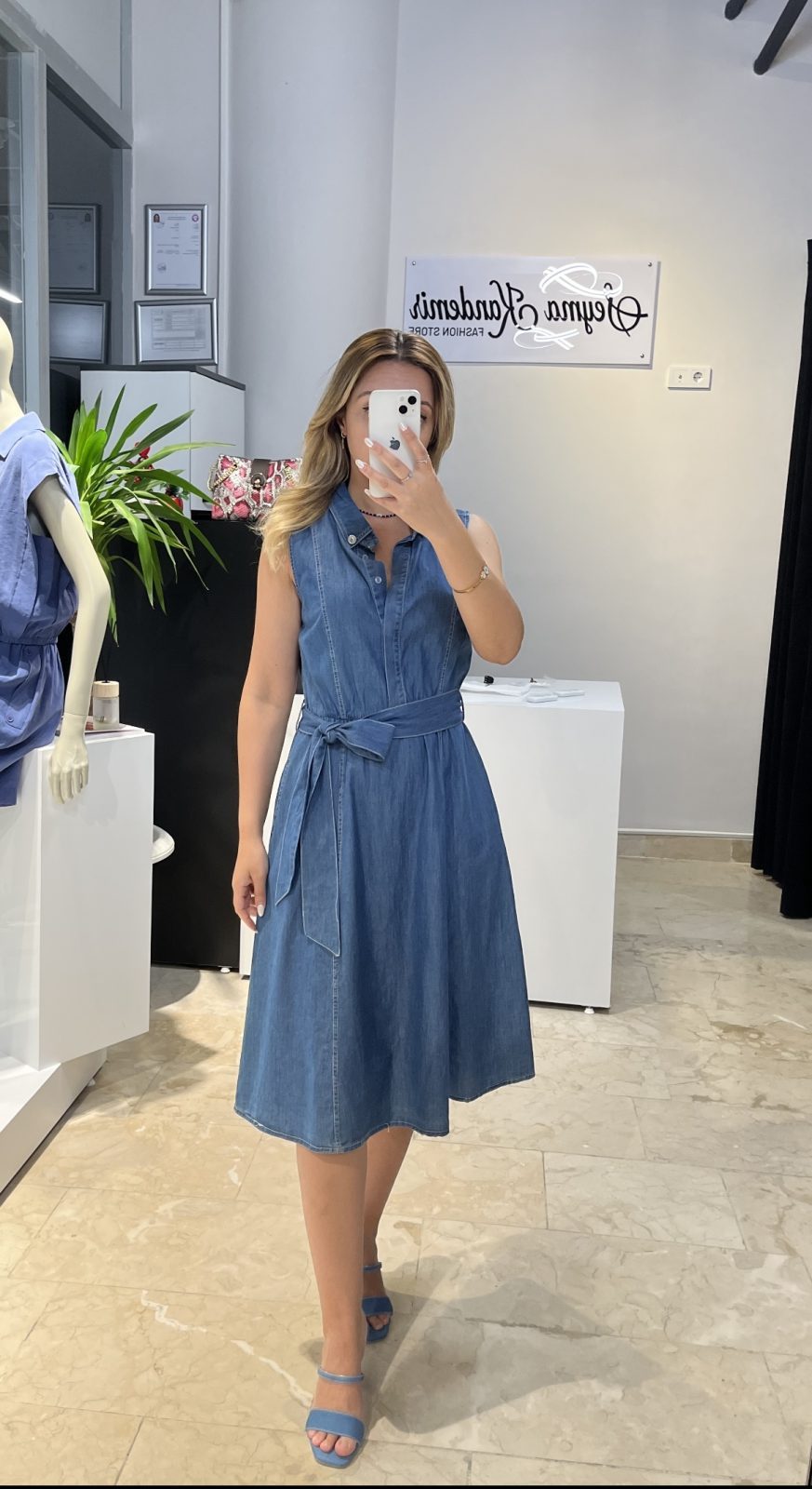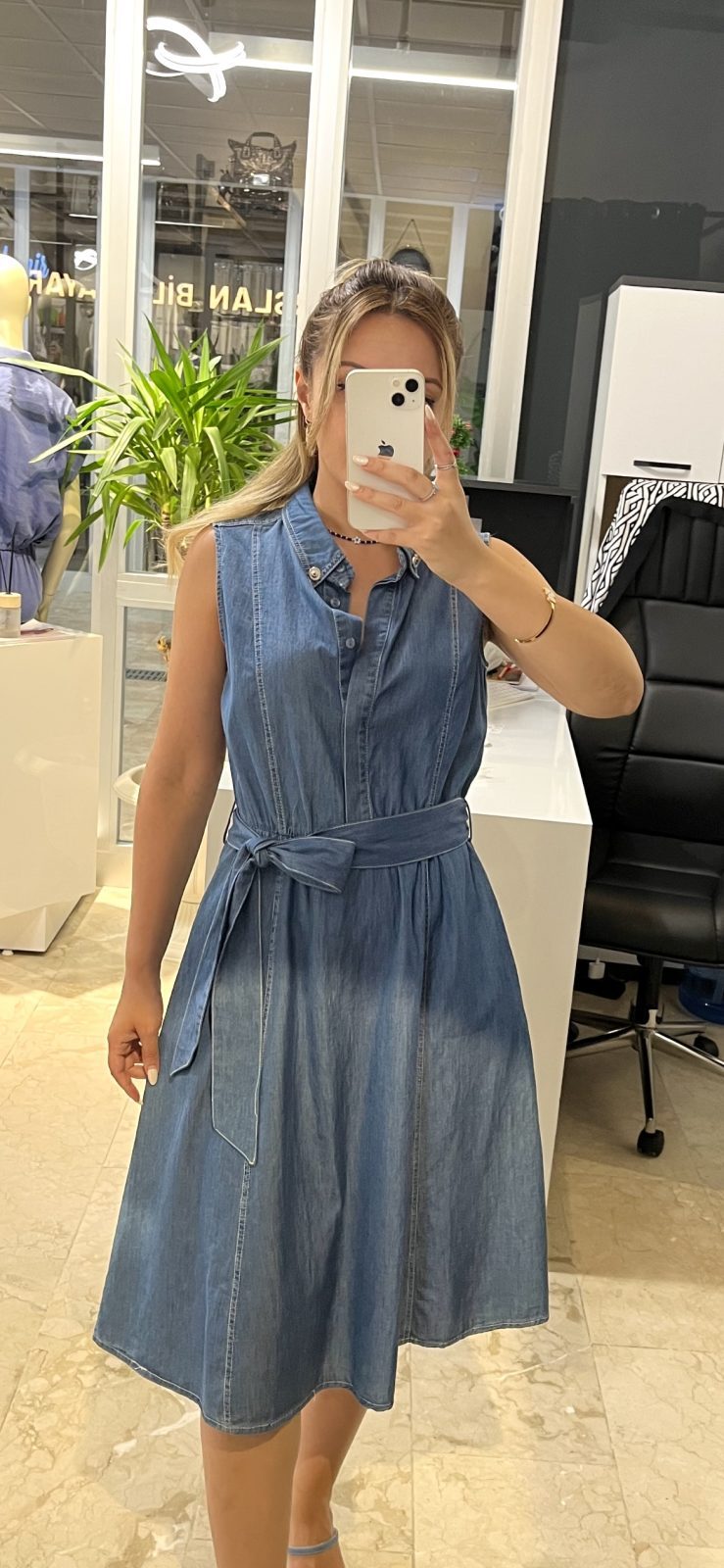 Denim Kemerli Elbise