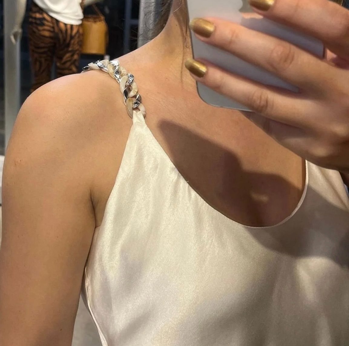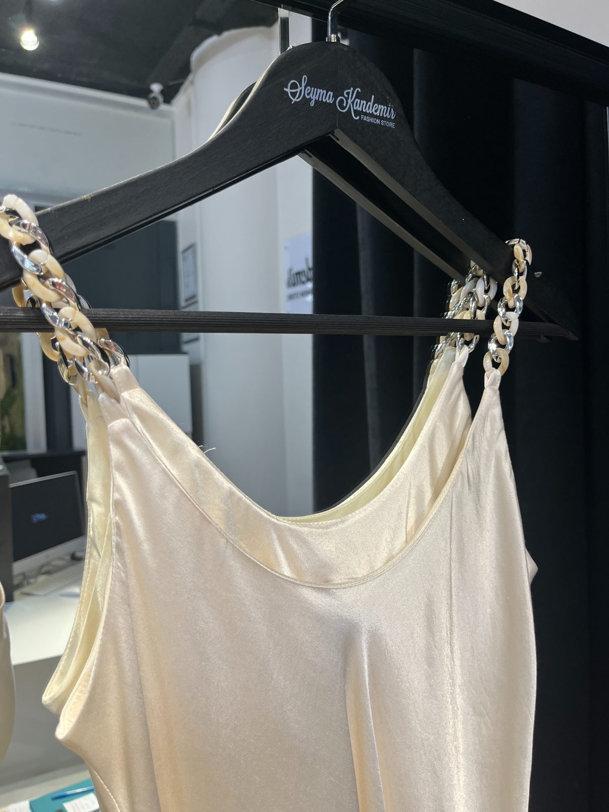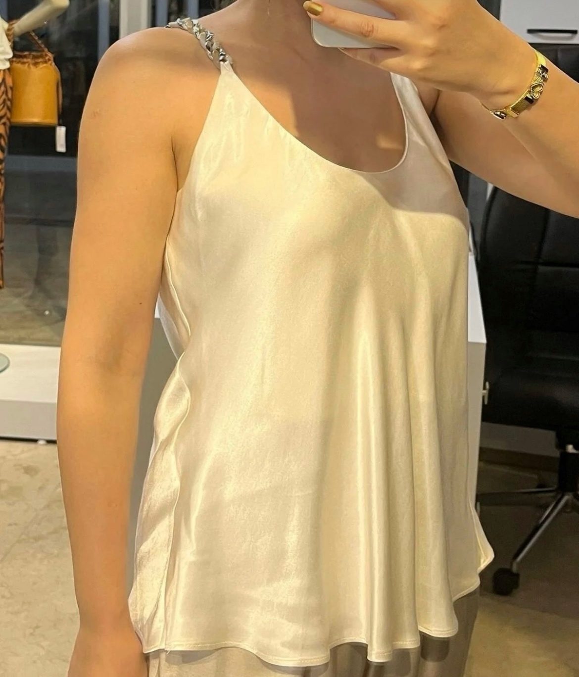 Zincir Askılı Saten Bluz