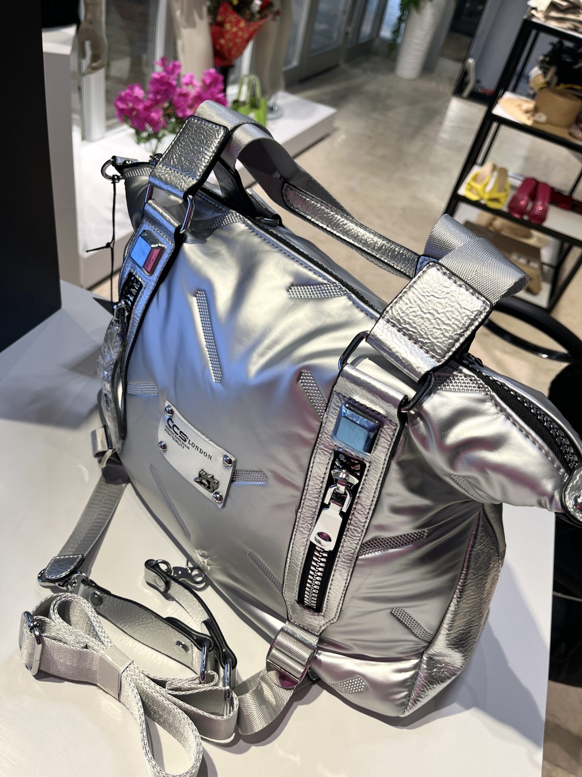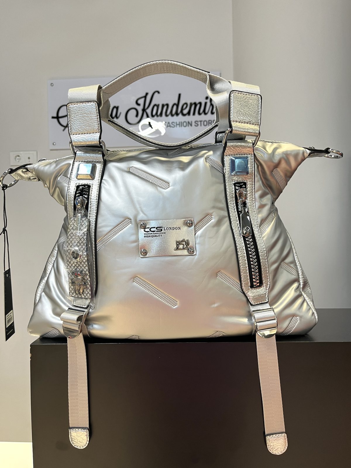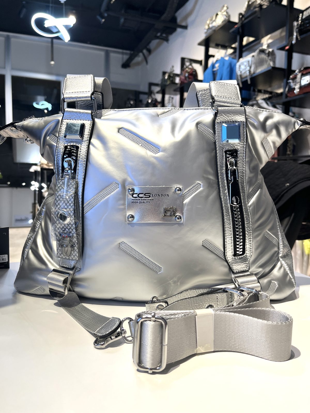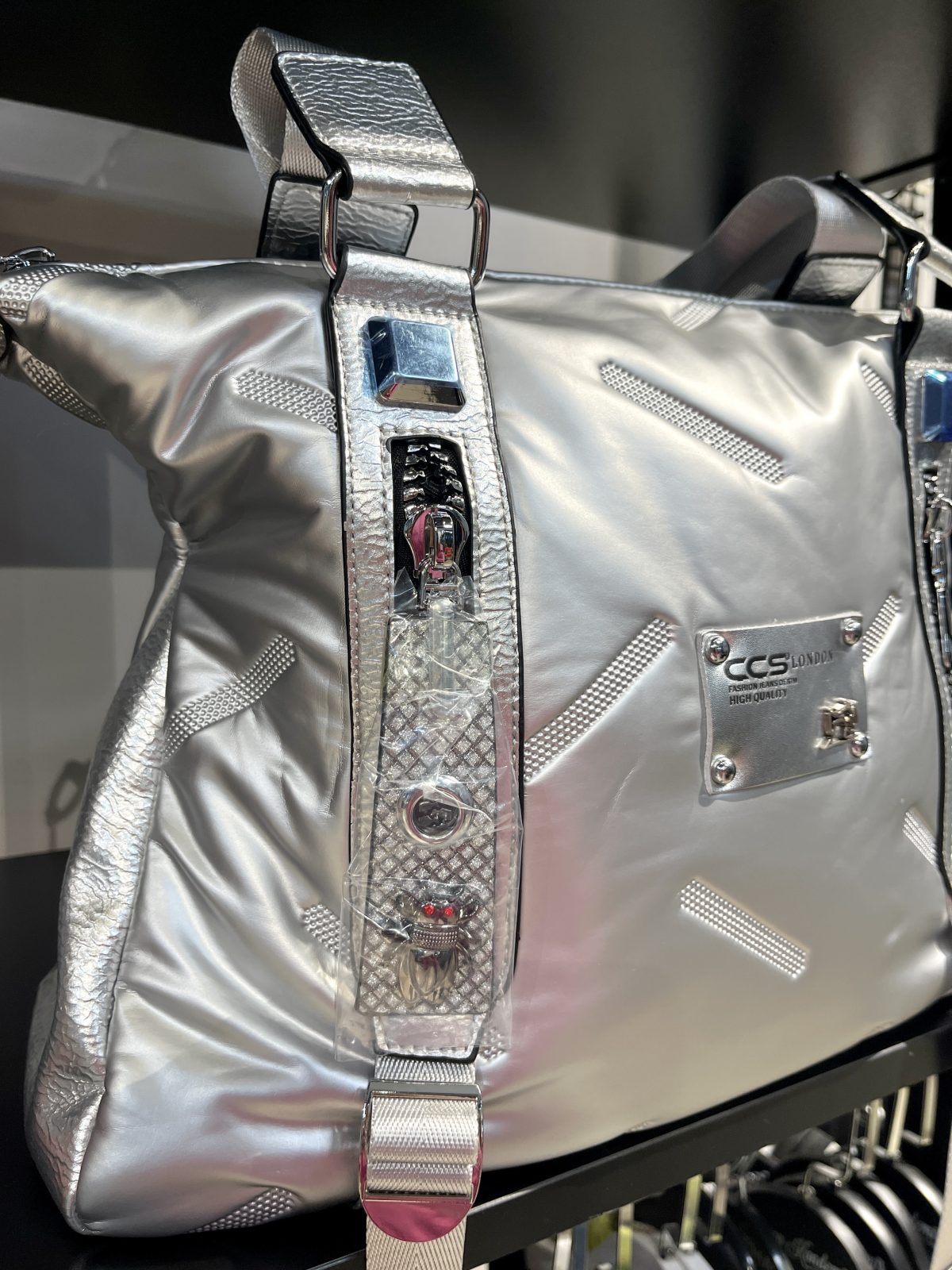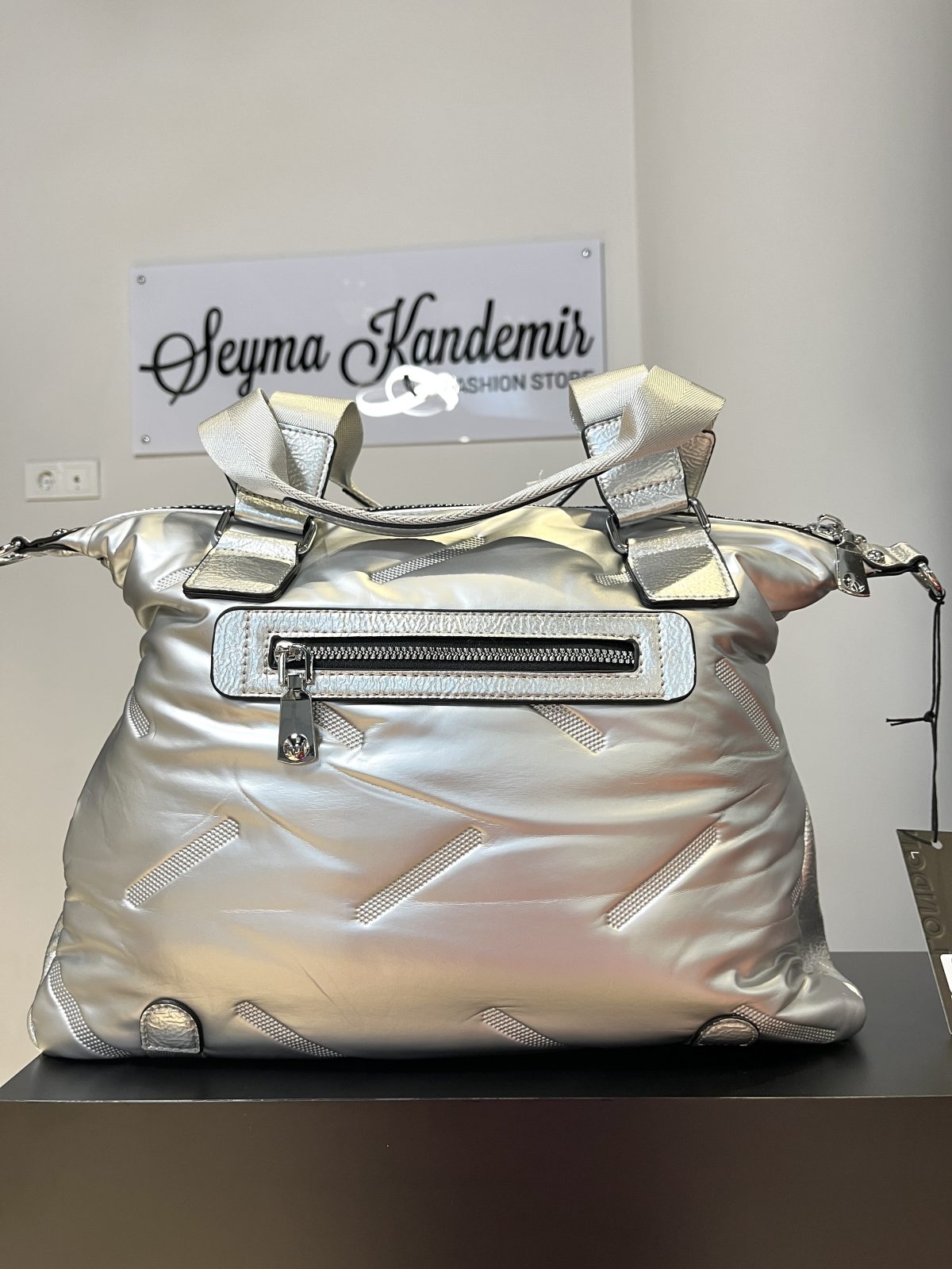 Gümüş Büyük Boy Fermuar Detaylı Omuz ve Kol Çantası