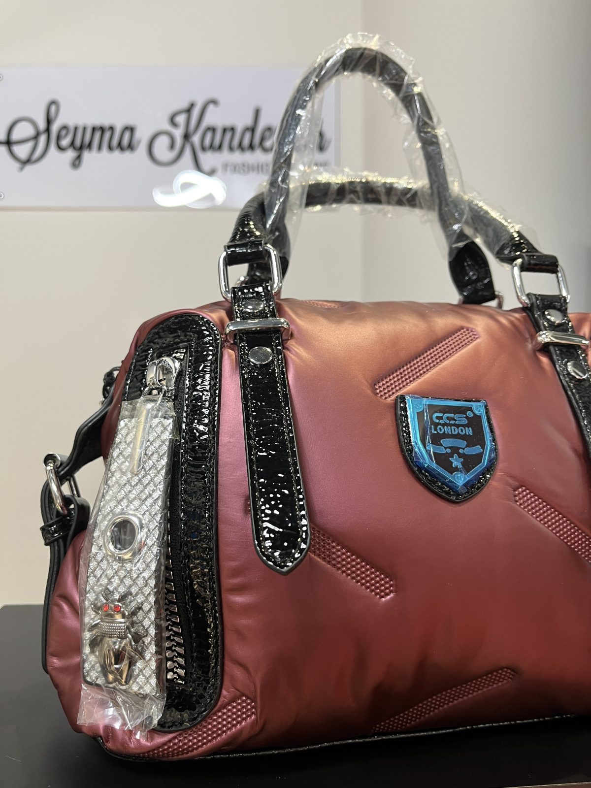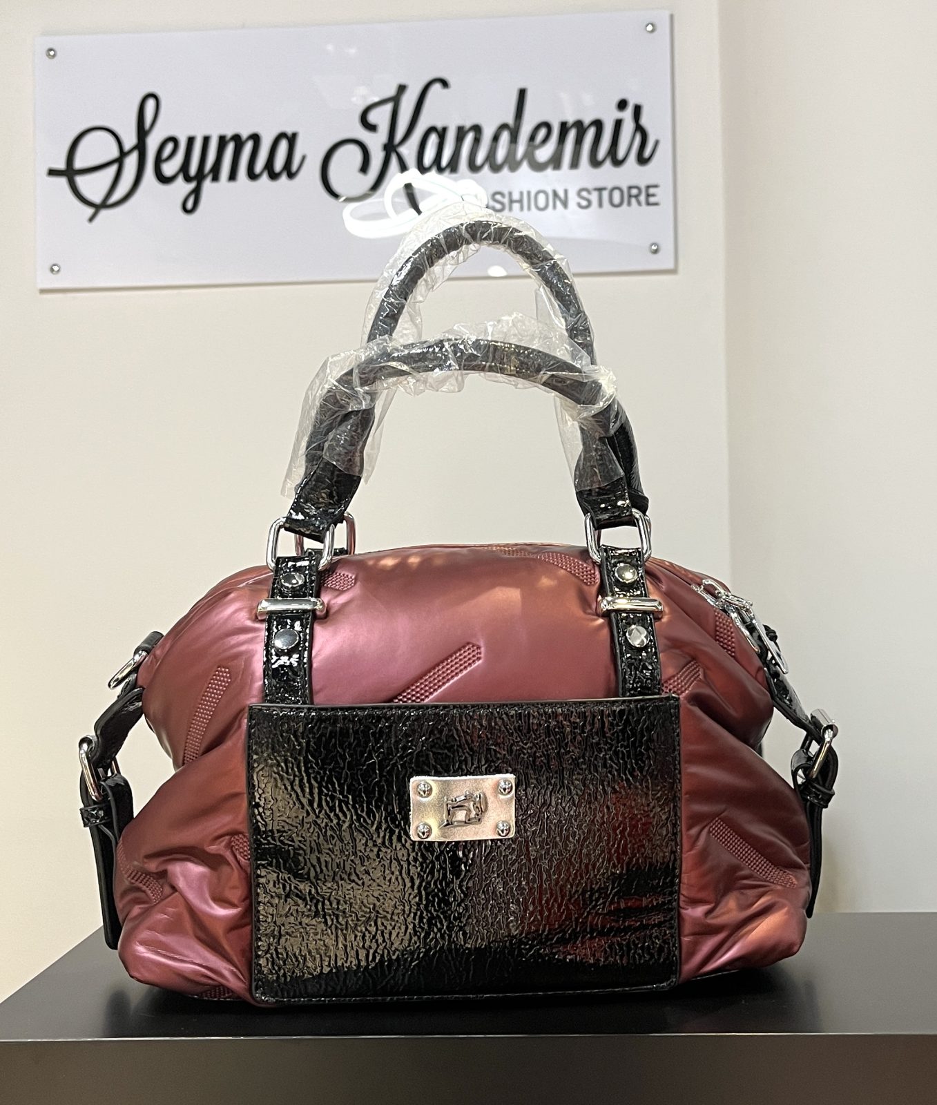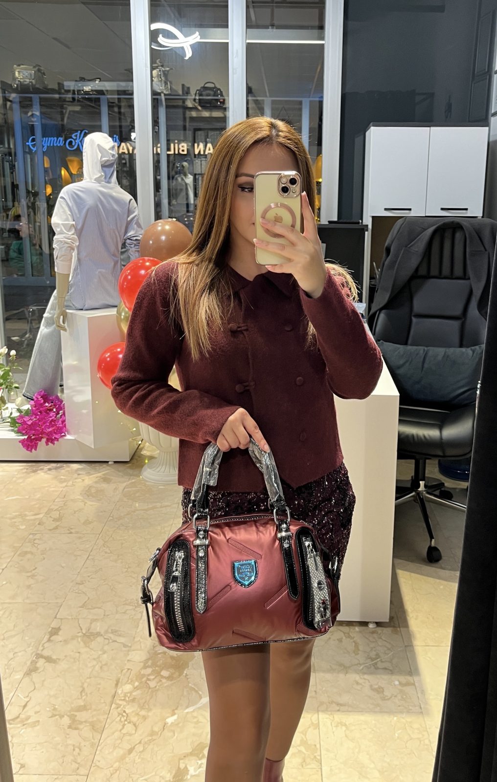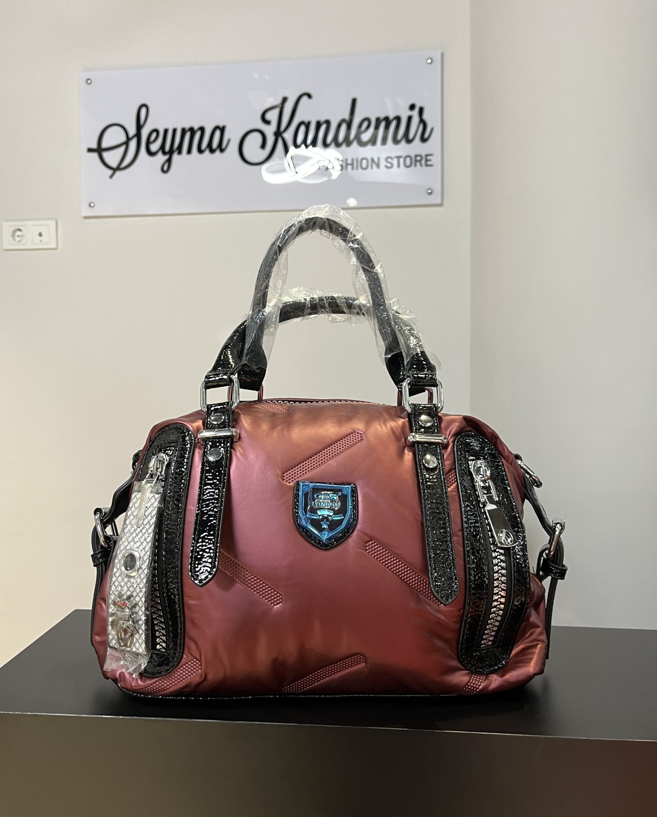 Bordo Fermuar Detaylı Omuz ve El Çantası