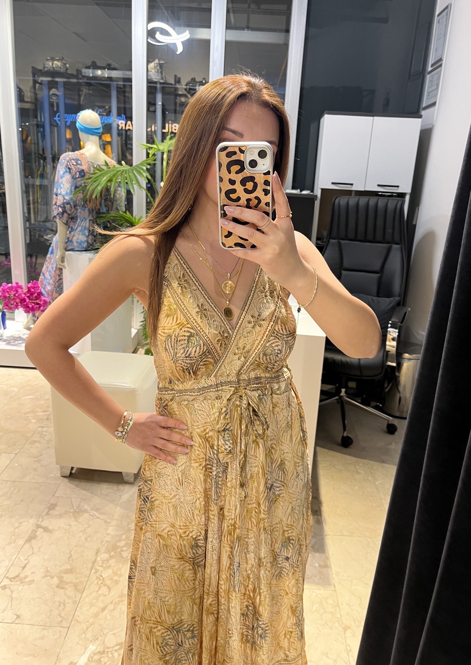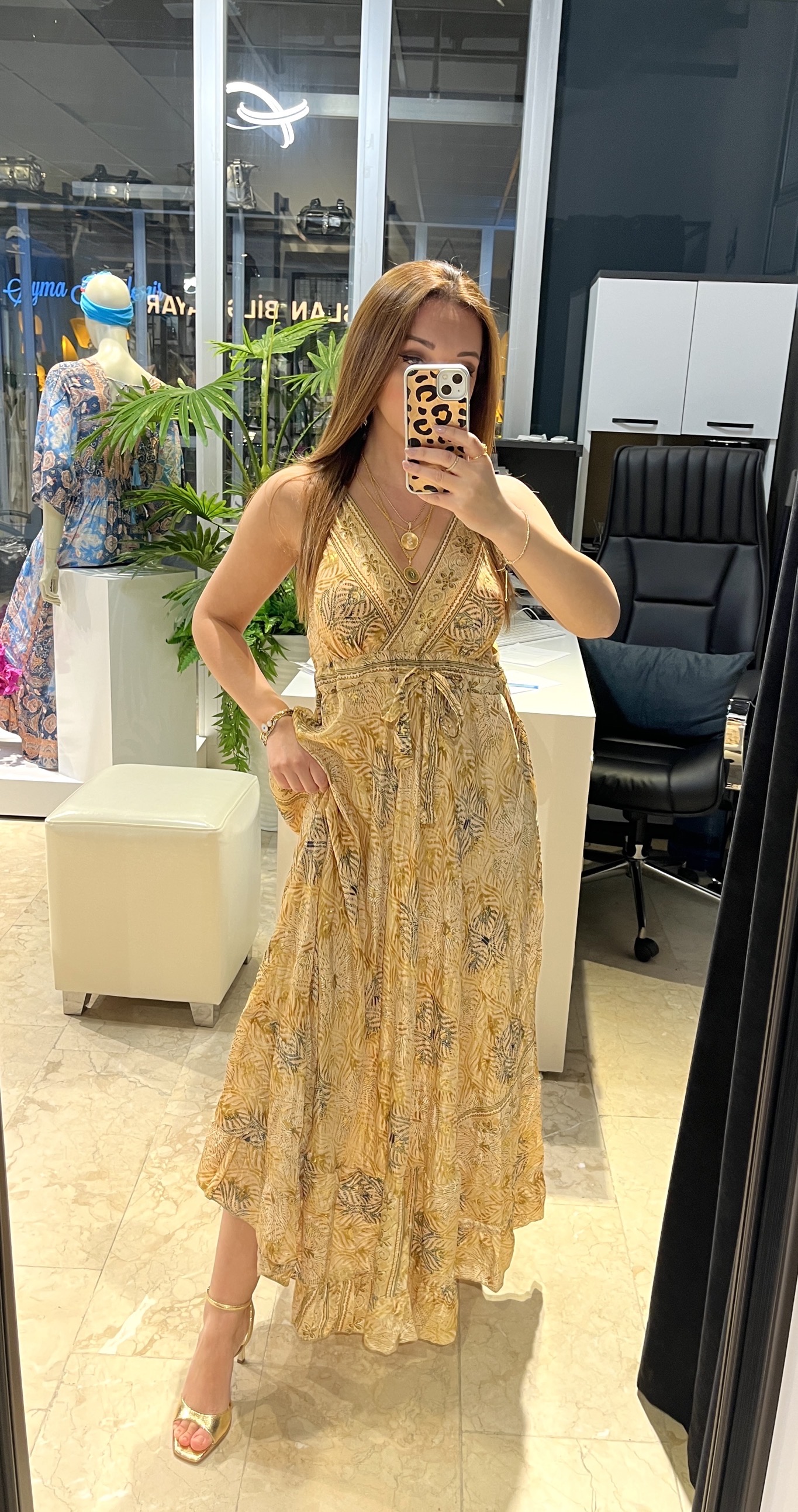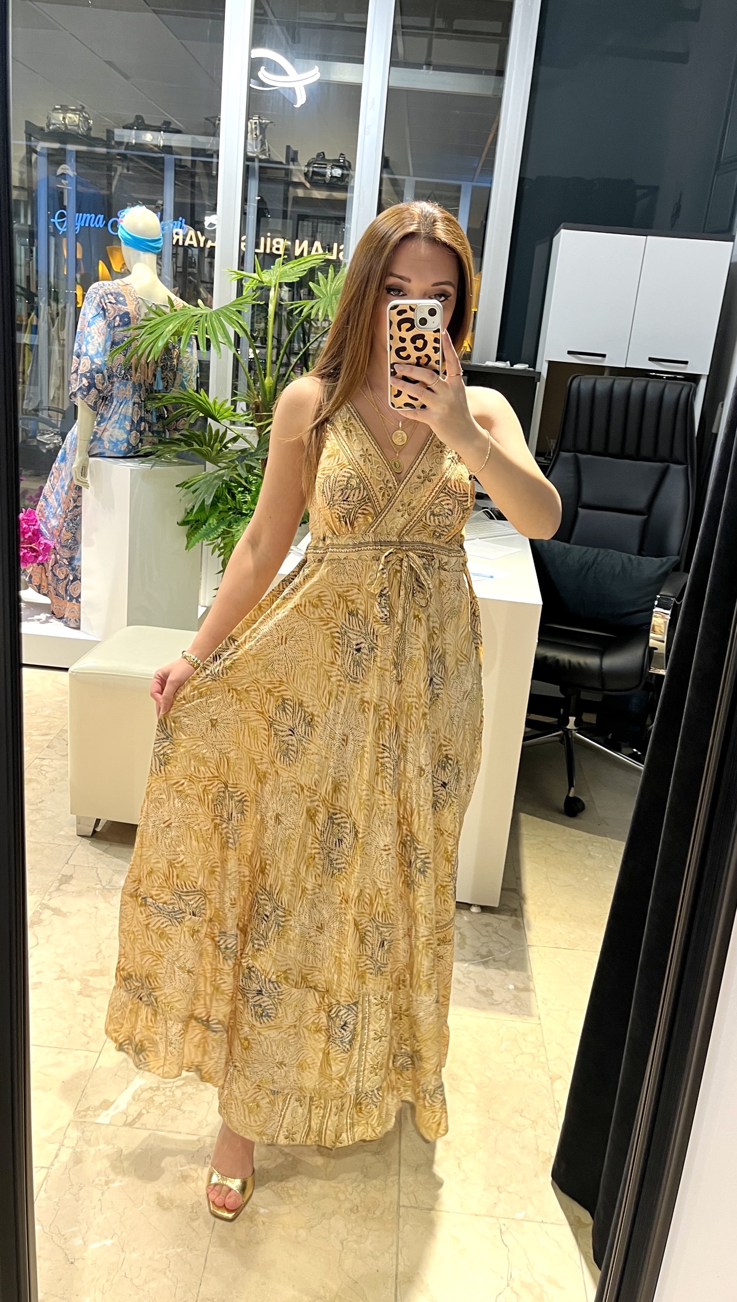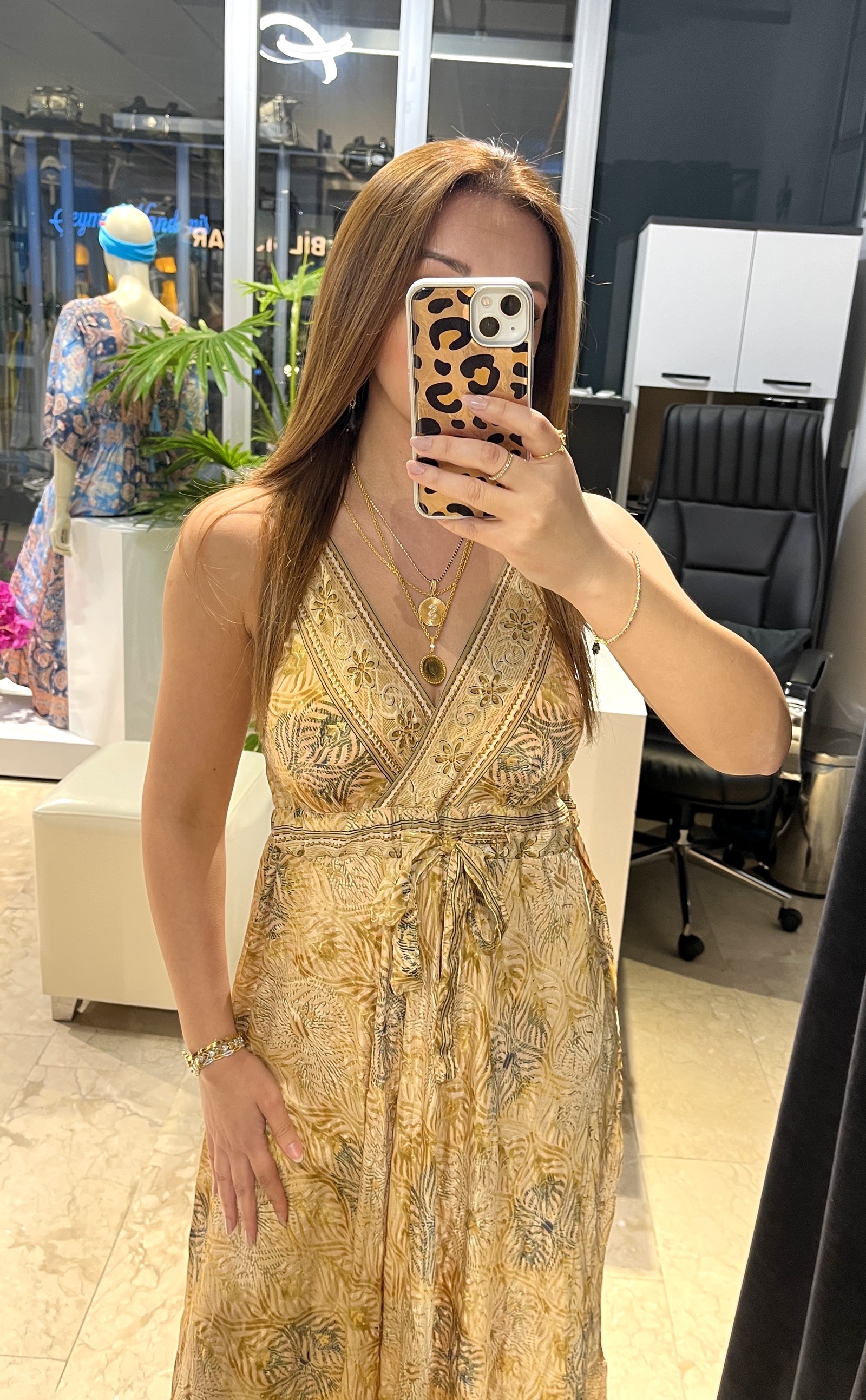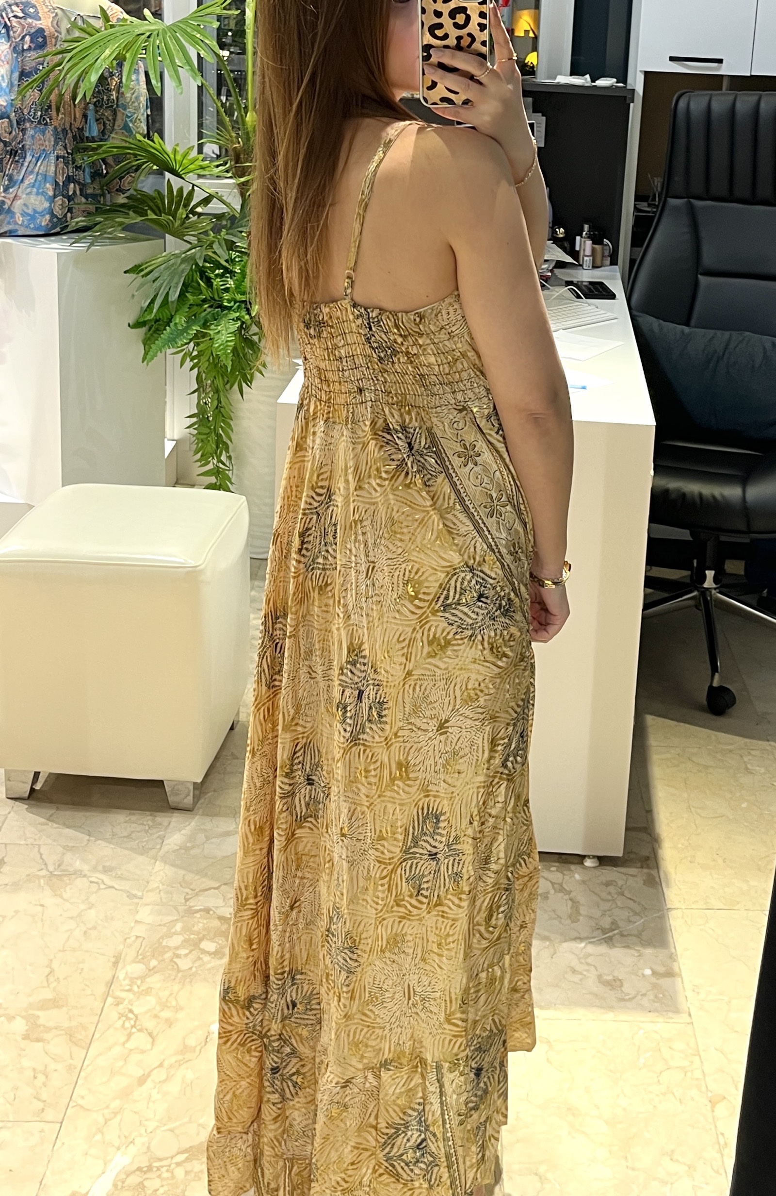 Sarı Askılı Arkası Lastikli İpek Elbise